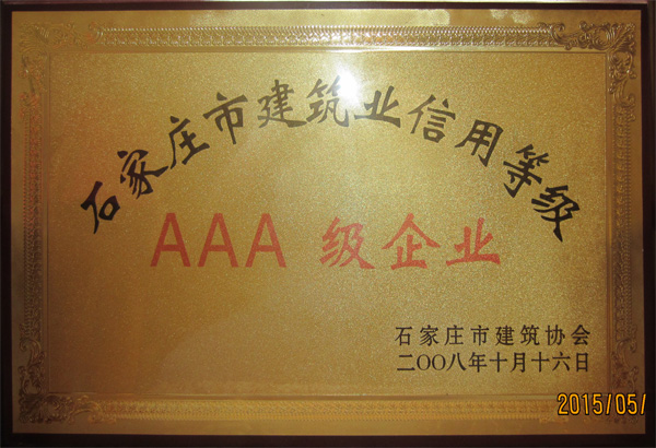 石家莊市建筑業(yè)信用等級AAA級企業(yè)